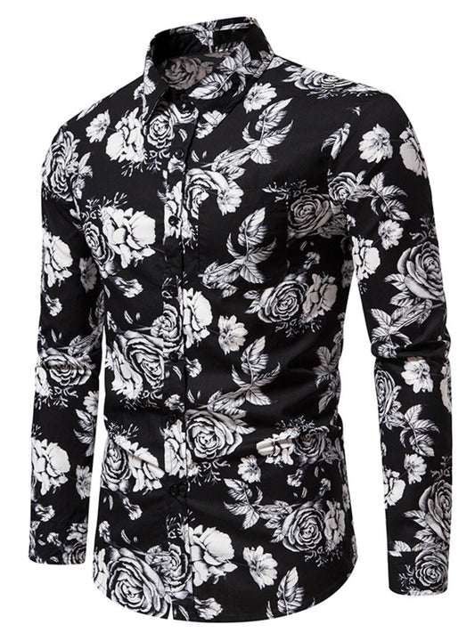 Loppil Men’s Floral Print Slim Fit Long Sleeve Shirt Stylish Casual Top