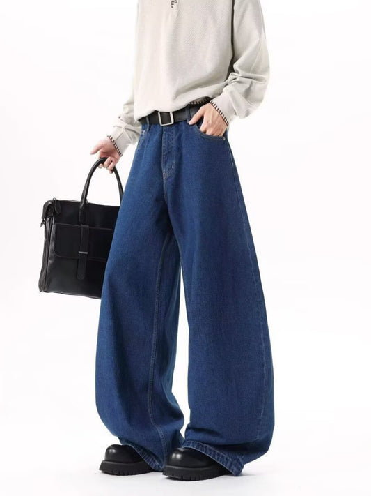 Loppil Men’s Full Size Wide Leg Jeans Plus Size Casual Denim Pants