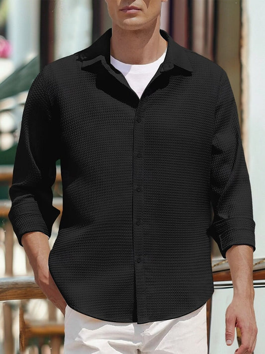 Loppil Men’s Full Size Waffle Knit Button Up Shirt Plus Size Casual Top