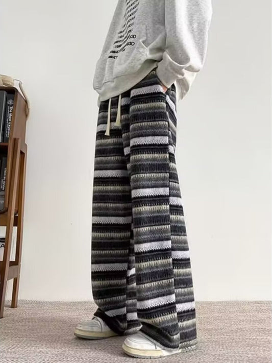 Loppil Men’s Plus Size Drawstring Striped Wide Leg Pants Casual Comfortable Trousers