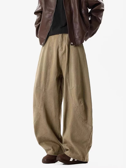 Loppil Men’s Full Size Vintage Wide Leg Pants Plus Size Casual Trousers