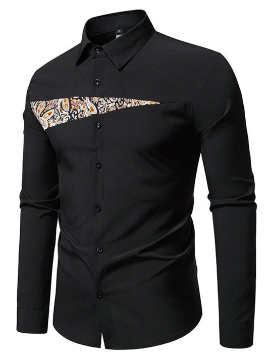 Loppil Men’s Paisley Patchwork Slim Fit Shirt Stylish Casual Top