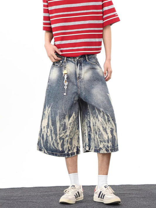 Loppil Men’s Full Size Wide-Leg Denim Shorts Plus Size Casual Summer Wear