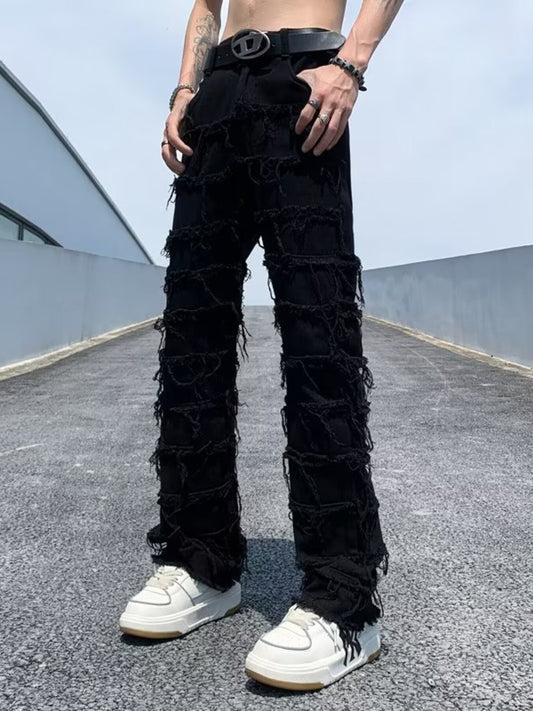 Loppil Men’s Full Size Frayed Slim Fit Jeans Plus Size Casual Denim Pants
